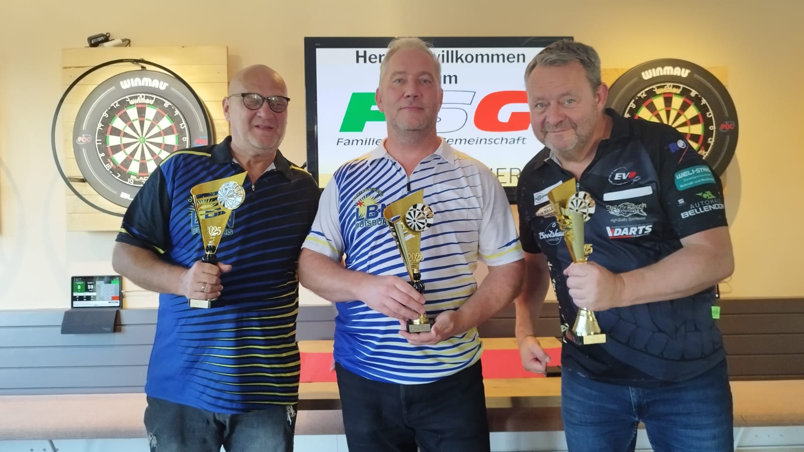 Nach spannenden Matches setzte sich schließlich der erfahrene Spieler Frank W. durch, der mit konstant hoher Trefferquote und mentaler Stärke überzeugte. Frank T. belegte den zweiten Platz, den er sich mit einer starken und souveränen Leistung verdiente. Auf den dritten Rang spielte sich Kai W., der sich über seinen ersten Pokal im Steeldarts freuen durfte. Die Siegerehrung wurde feierlich von den Organisatoren durchgeführt – inklusive Pokalübergabe und viel Applaus. Neben dem sportlichen Teil sorgten Leckeres vom Grill, Musik und gesellige Gespräche für ein rundum gelungenes Event. Viele Teilnehmer nutzten die Gelegenheit, sich über Trainingsmethoden, neue Darts und kommende Turniere auszutauschen. Die positive Resonanz lässt hoffen, dass das Steeldarts-Turnier beim LBN-Duisburg zu einer festen Größe im Veranstaltungskalender der FSG-NW wird. Die Organisatoren kündigten bereits an, auch im kommenden Jahr wieder ein Turnier auszurichten – dann mit noch mehr Teilnehmern.
